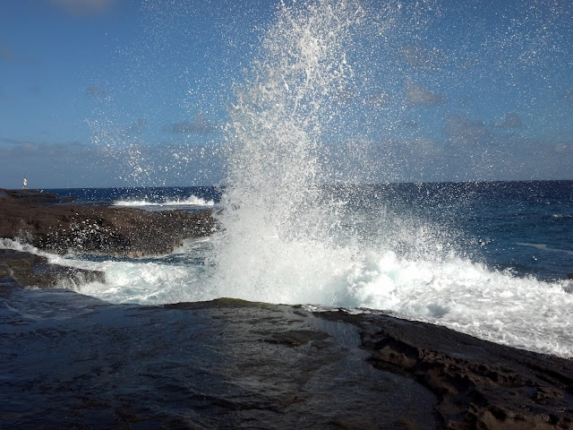 From the far Northwest a few post ago to the far Southeast now. We heard about a place where some good surfers go during the summer to catch some choice waves so we had to check it out. I was not as entertained by the few surfers there as I was the waves crashing into the rocky shore.